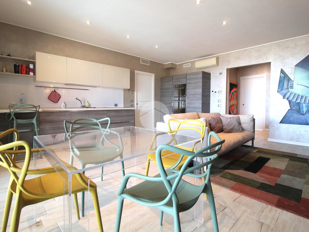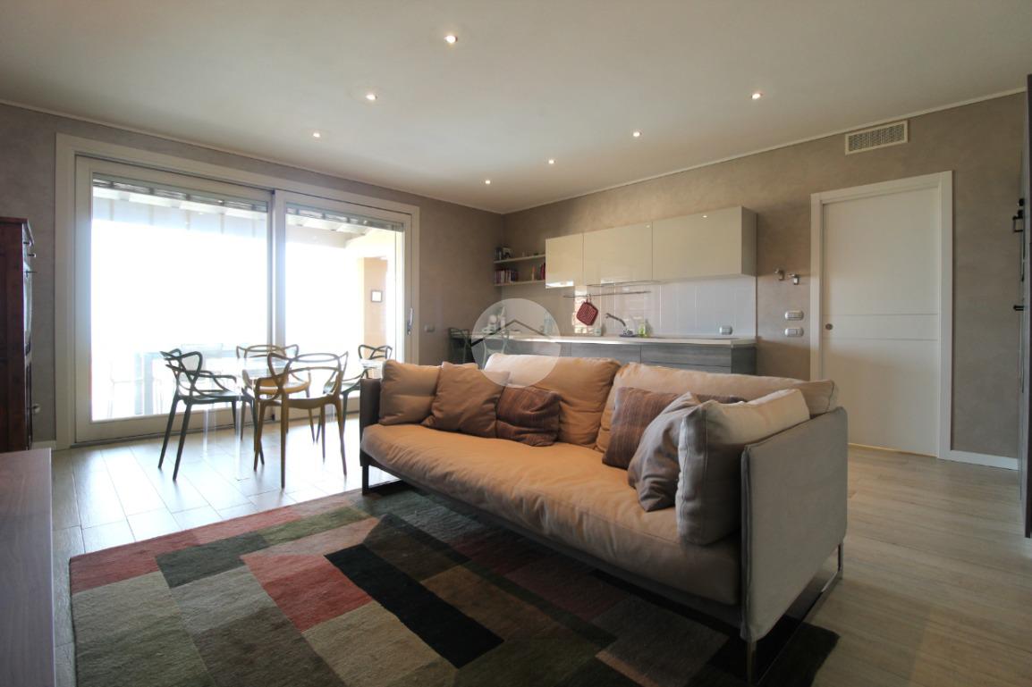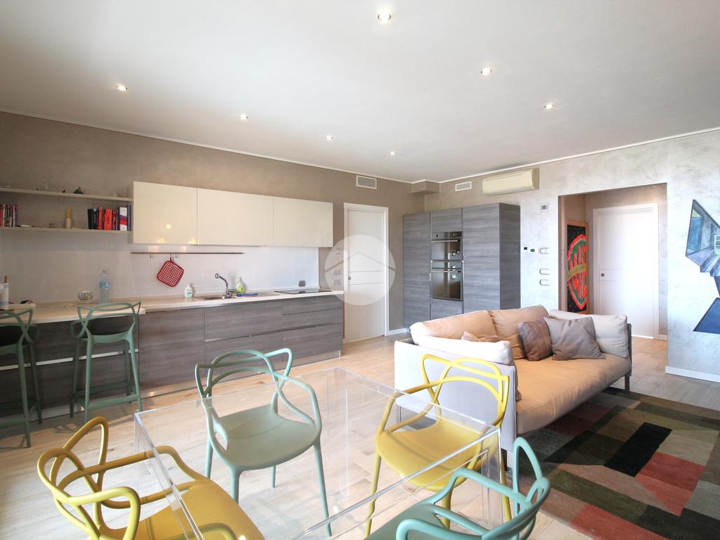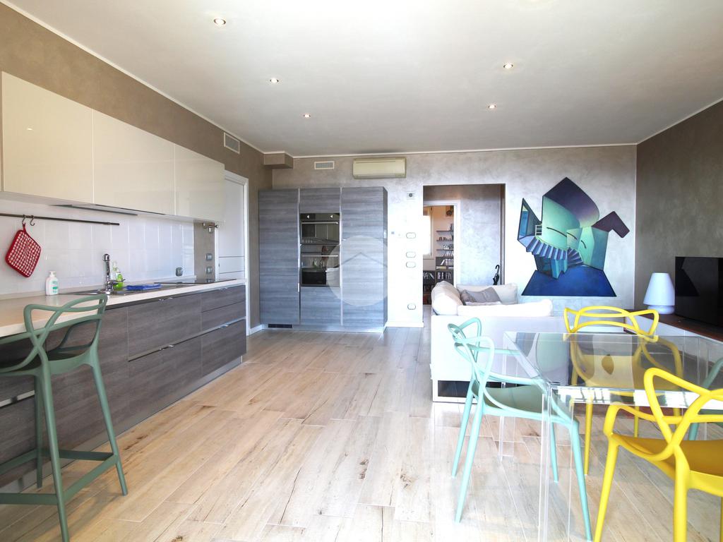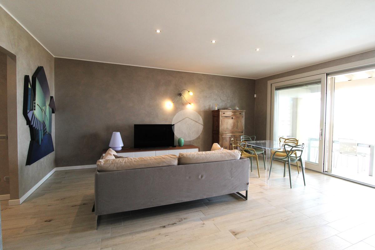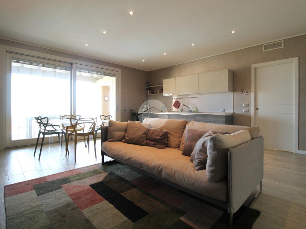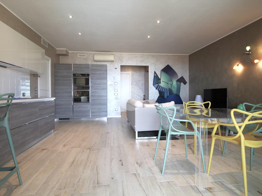 L'appartamento è composto da un ampio soggiorno con cucina a vista, concepito per massimizzare la luminosità degli ambienti grazie alle grandi finestre che affacciano direttamente sulla terrazza. Questa deliziosa terrazza privata è ideale per trascorrere momenti all'aperto in totale privacy e perfetta tranquillità e per organizzare pranzi o cene all'aperto durante la stagione estiva, consentendo di godere appieno del clima favorevole e della vista incantevole sul lago.